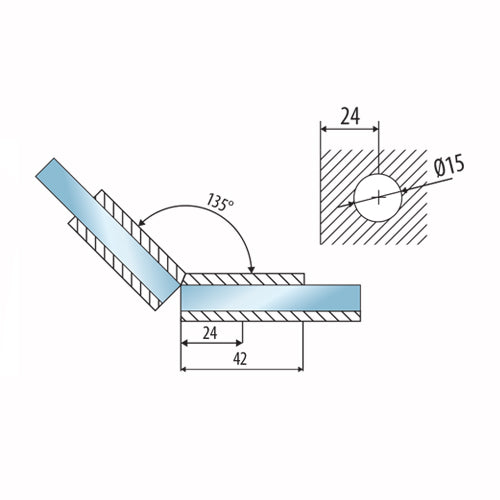CONECTOR VIDRIO 135º BRILLANTE. ALTA CALIDAD. 10 AÑOS DE GARANTIA.