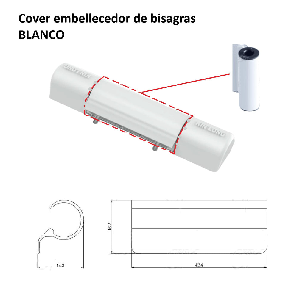 Covertor embellecedor color Blanco de Bisagras y biela para hardware kinglong de sistema de ventanas uPVC y Aluminio