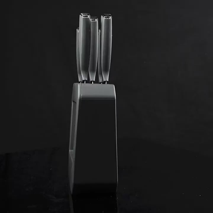 - Incluye base organizadora con ventana transparente para mantener los cuchillos visibles y ordenados.