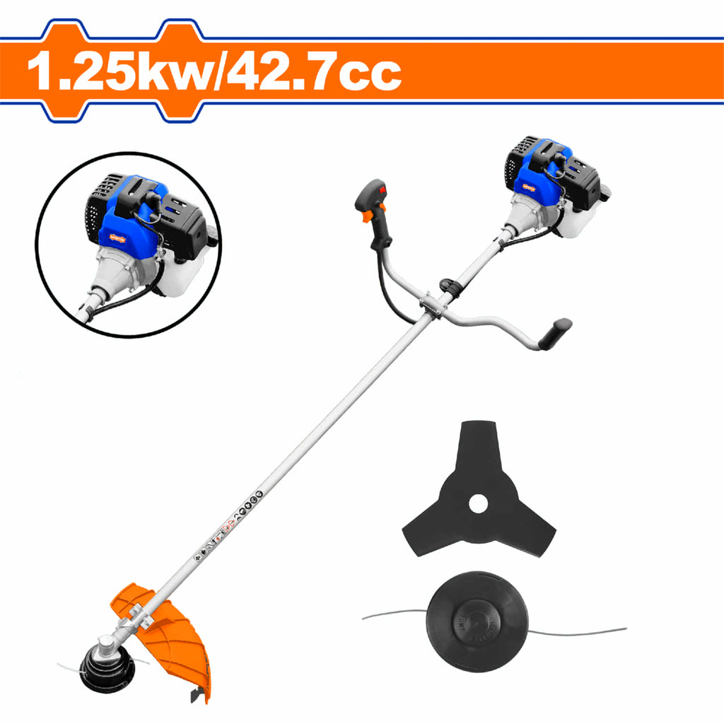 | Características | Enfriado por aire a gasolina. 1.25Kw (2HP) 43cc. Velocidad máxima: 8000rpm. Camino de corte máximo: 420mm Carrete de hilo: 2.4mmx4m. |