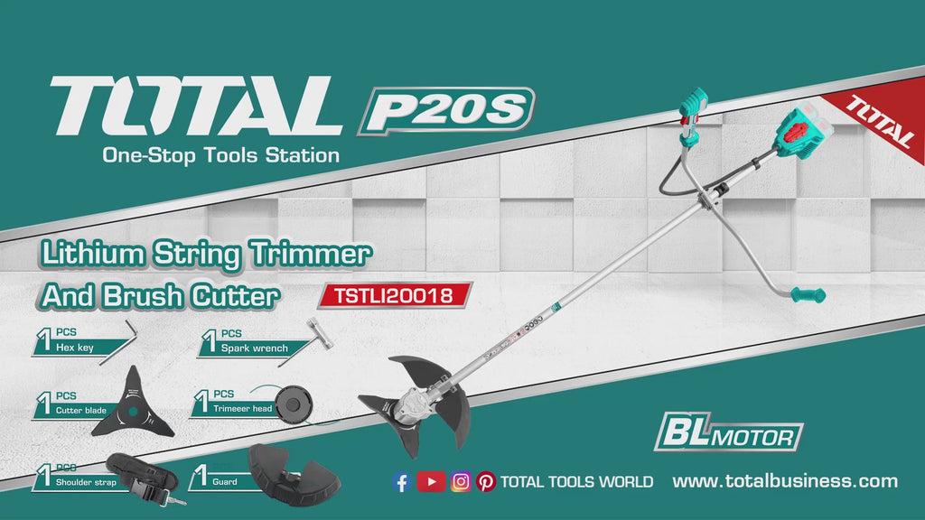 Desmalezadora Inalámbrica de Batería de Litio 20V. Motor sin escobillas. Velocidad de 0-5500/min 0-7500/min. Dia línea 2.0mm. Dia. Corte 330mm. Largo línea 5m. 1pcs Línea 1pcs Línea de la bobina. 1pcs Disco de corte 3T. No incluye Batería ni Cargador.