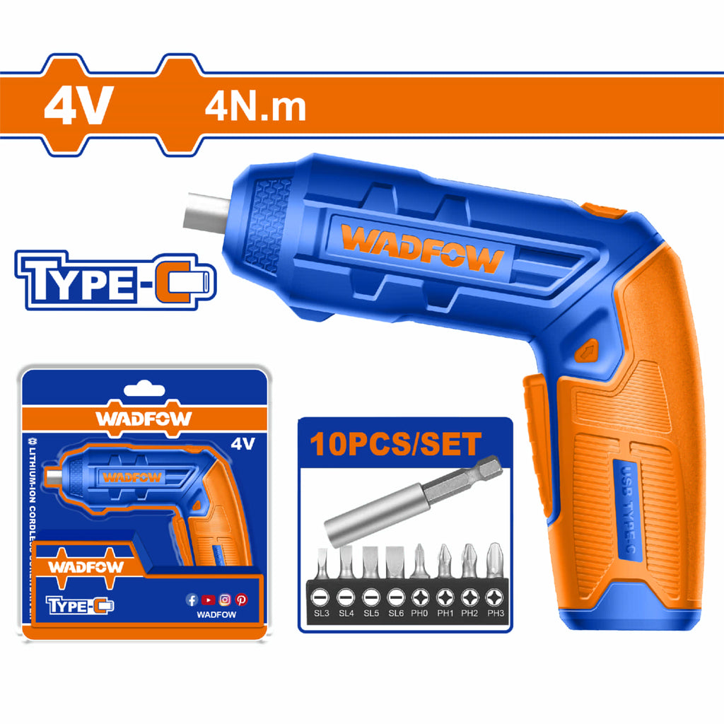 | *Nombre | Destornillador inalámbrico 4V. Carga USB cable tipo C de celular. 4N.m. 240 rpm. Mango ajustable. |