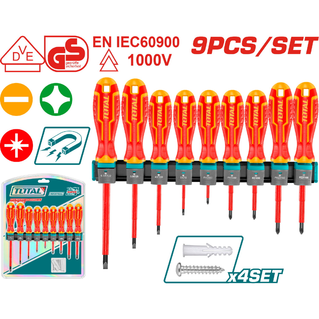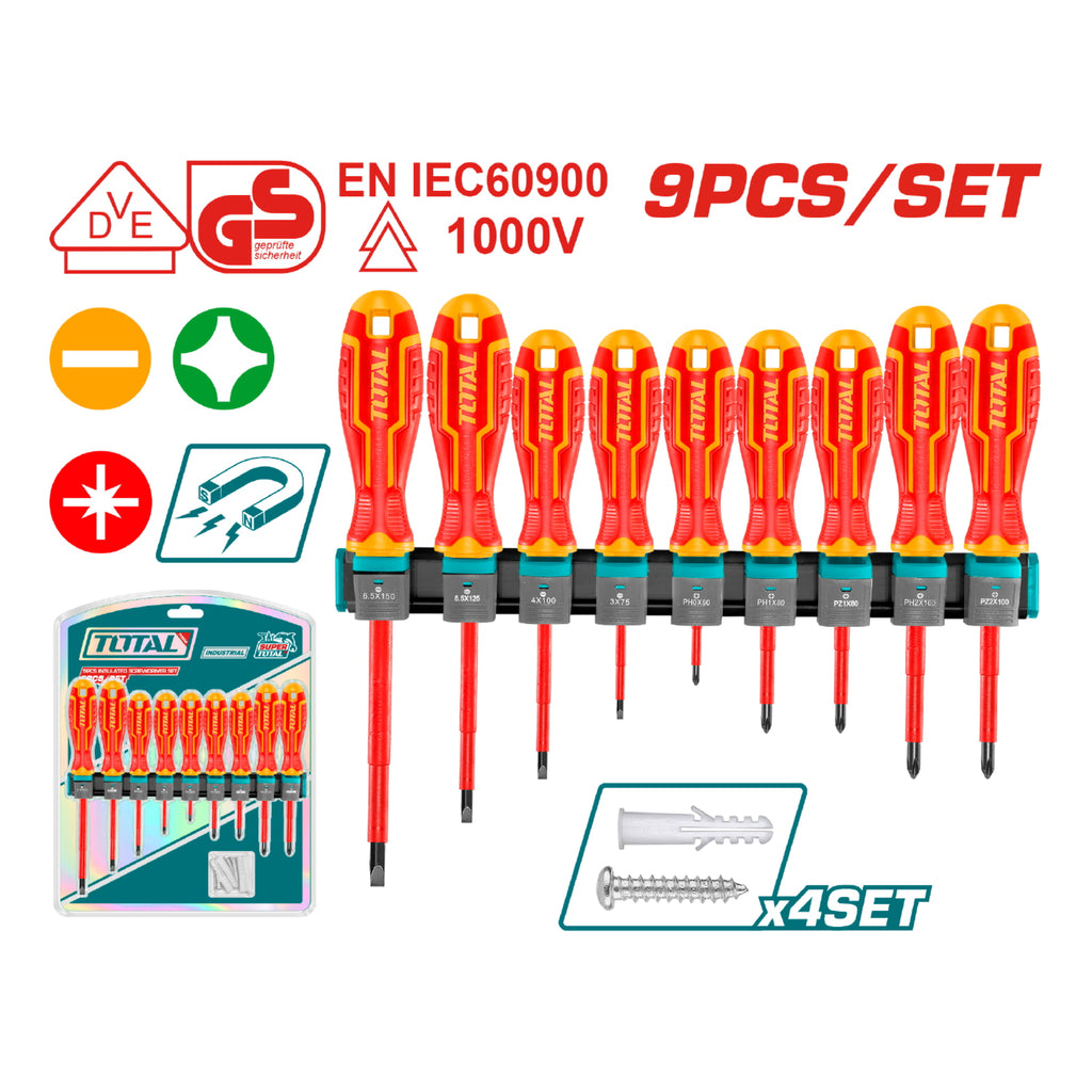 Destornilladores Aislados Set de 9 piezas. Para electricista