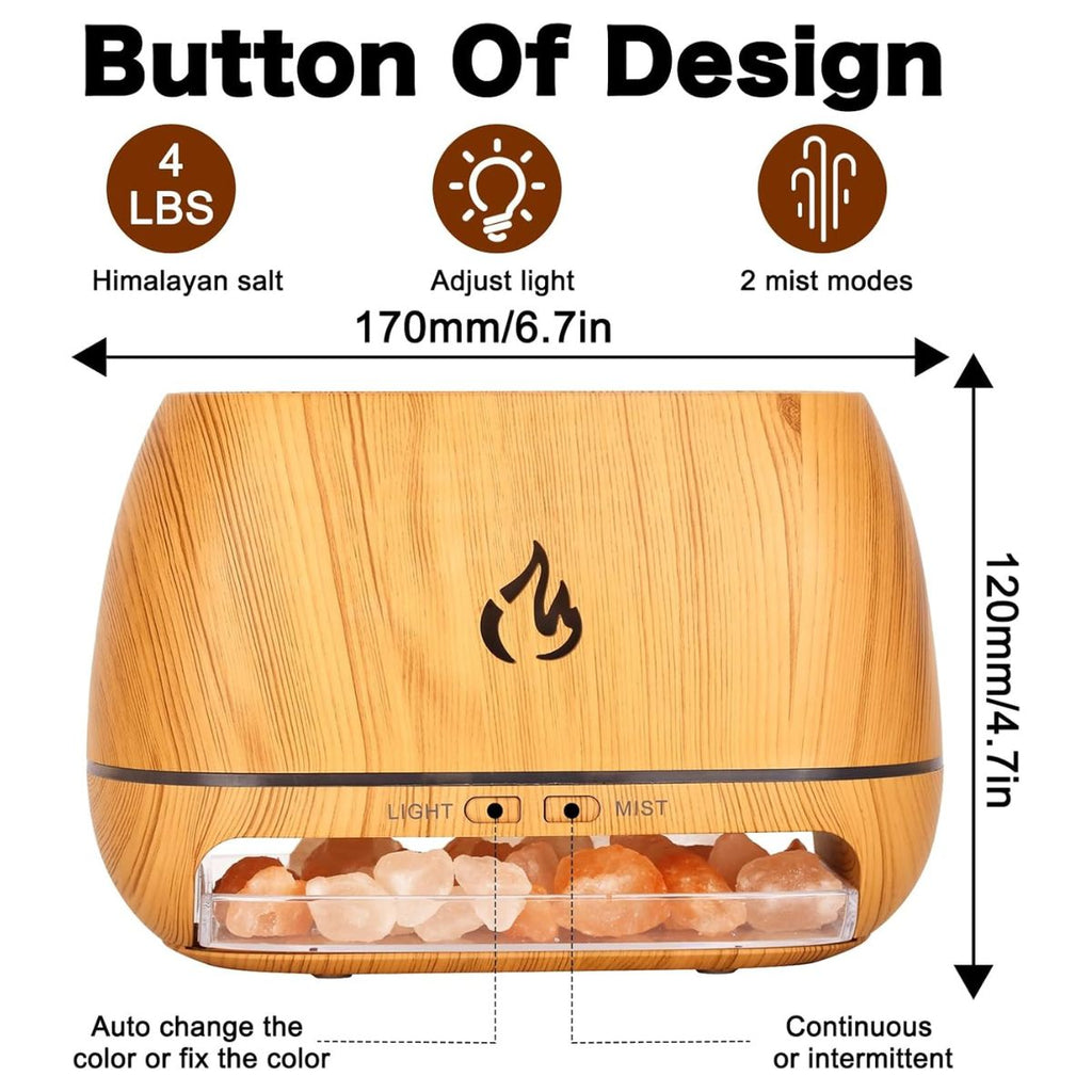 Difusor Aromas de Aceites Esenciales con Lámpara de Sal Himalaya. Con 7 Colores de Luz Nocturna. Humidificador Aromático.