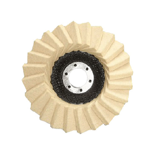 Disco de lana especial solapado para pulimiento con pasta. 4 1/2'' x 7/8''.