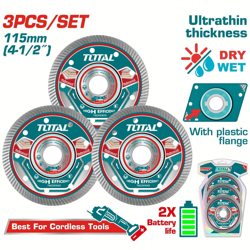 | Características | Hoja 10mm 15 mm (4 ½″) × 22,2 mm (7⁄8″) Set de 3 piezas. Ultradelgada. Húmedo y Seco |