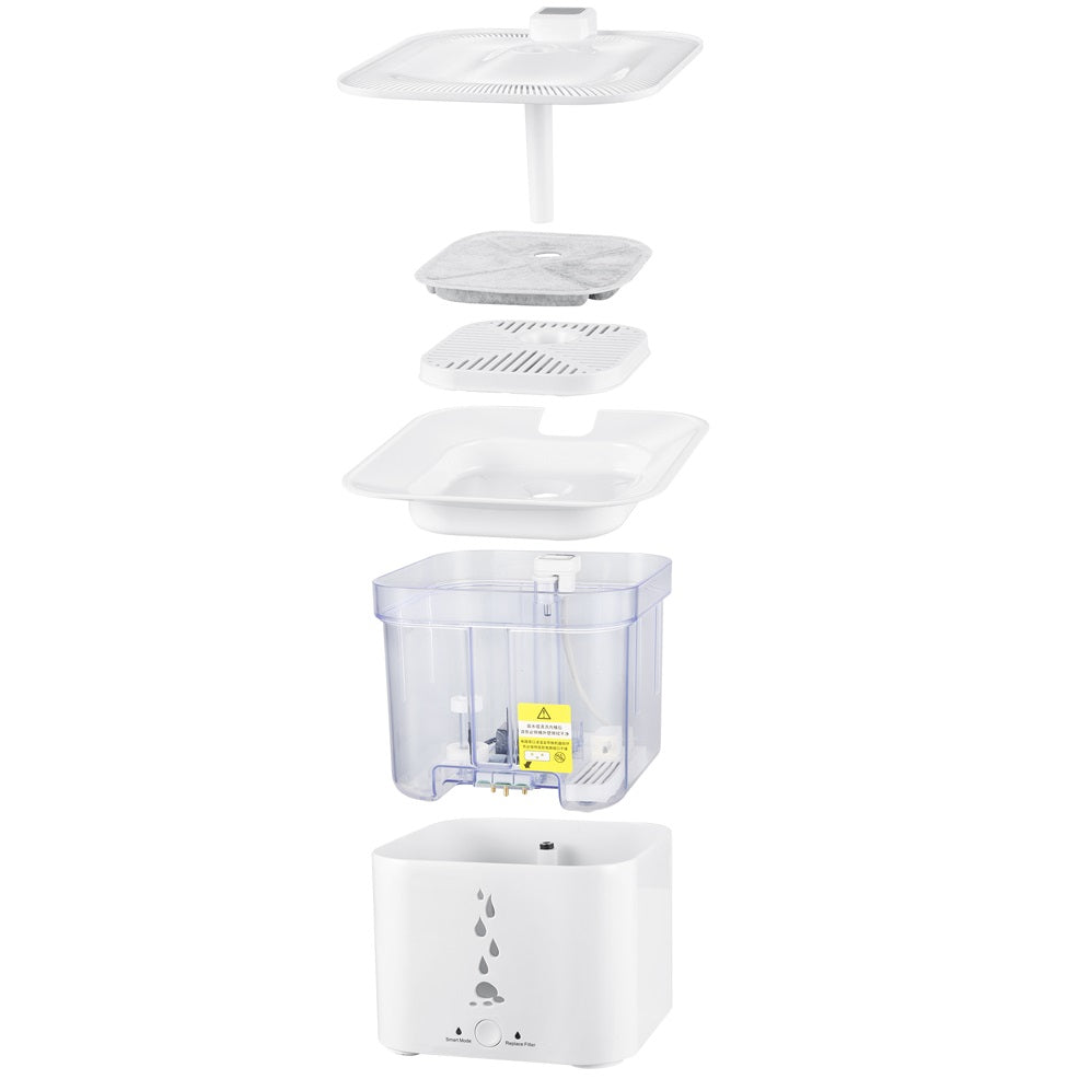 Bebedero automático para mascotas 2.75 Lts. Se activa fuente de agua por sensor de proximidad. Cubo interior desmontable, fácil de añadir agua y limpiar. Garantiza una purificación de calidad del agua.