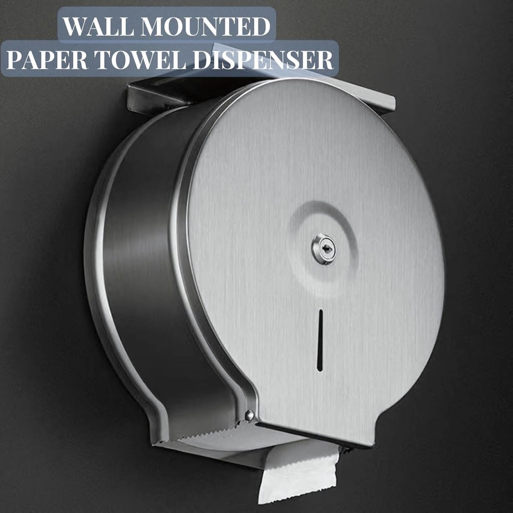 Dispensador de Papel Higiénico de Acero Inoxidable con Bandeja para Celular. Portarrollos Jumbo con cerradura.
