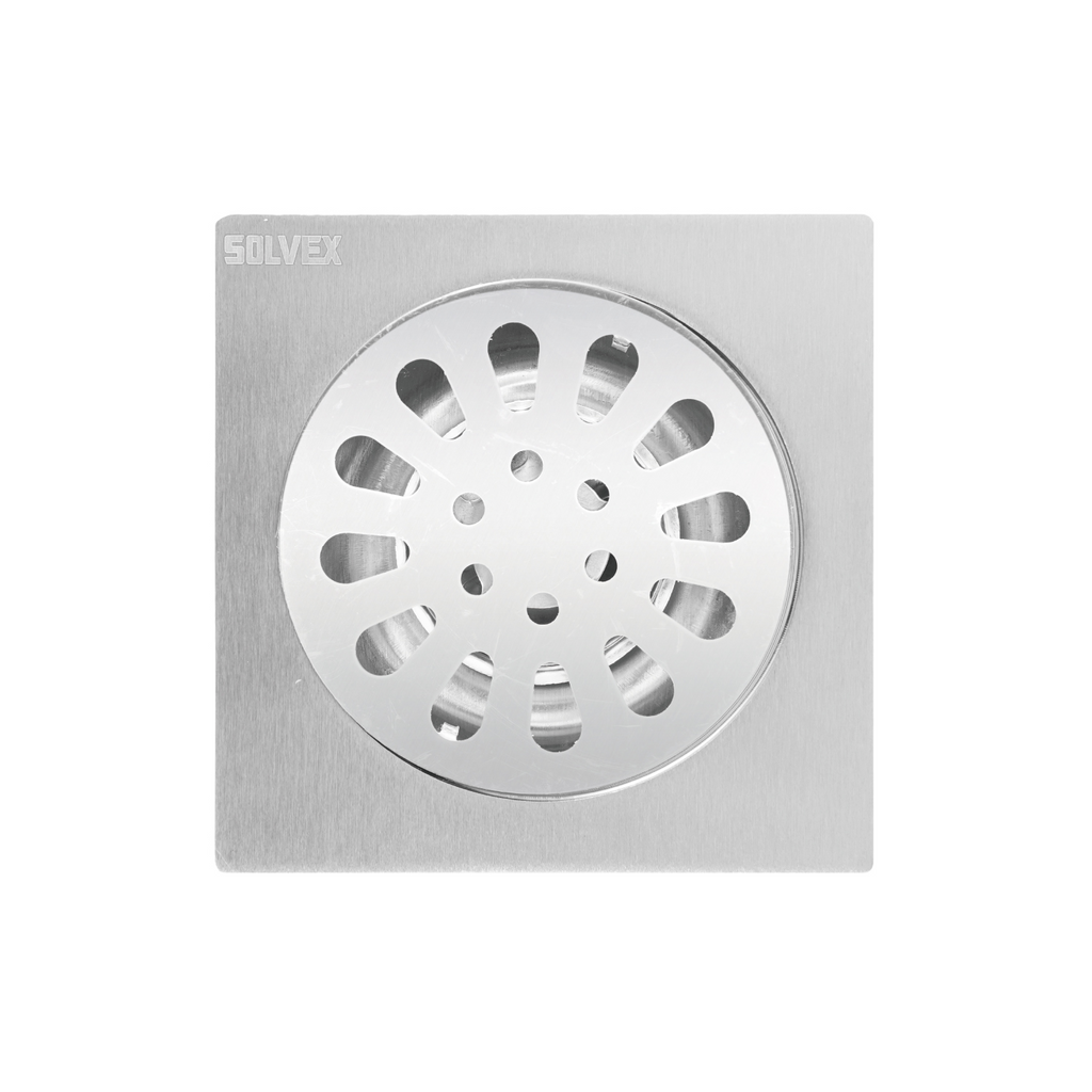 - Diseño de rejilla redonda sobre base cuadrada para drenaje eficiente