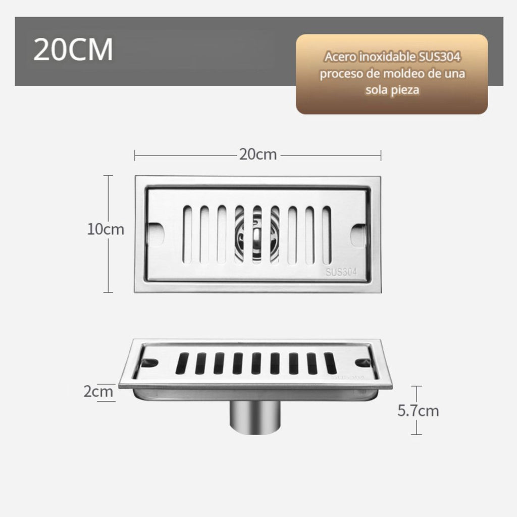 Drenaje Lineal De Piso 20 Cm. Rejilla Rectangular. Desagüe Para Baño. Acero inoxidable.