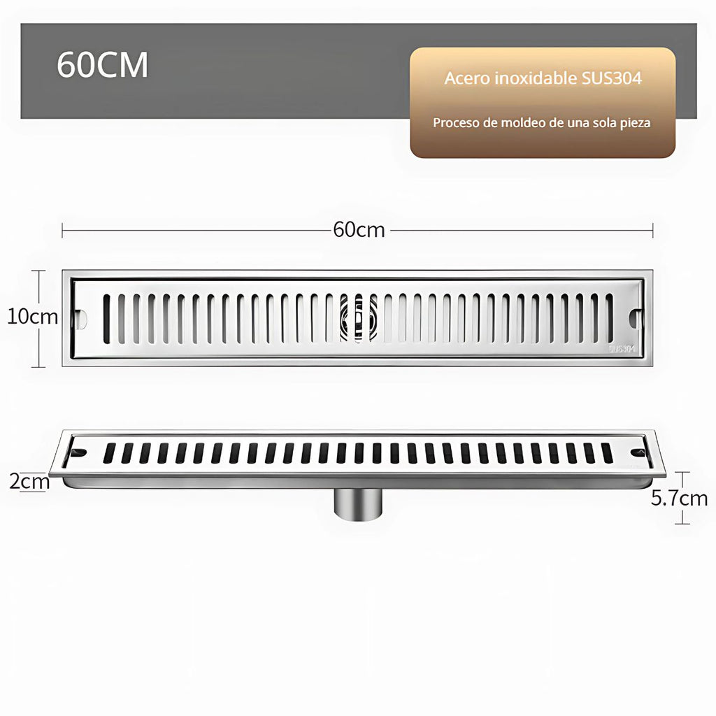 Drenaje Lineal De Piso 60Cm. Rejilla Rectangular. Desagüe Para Baño. Acero inoxidable.