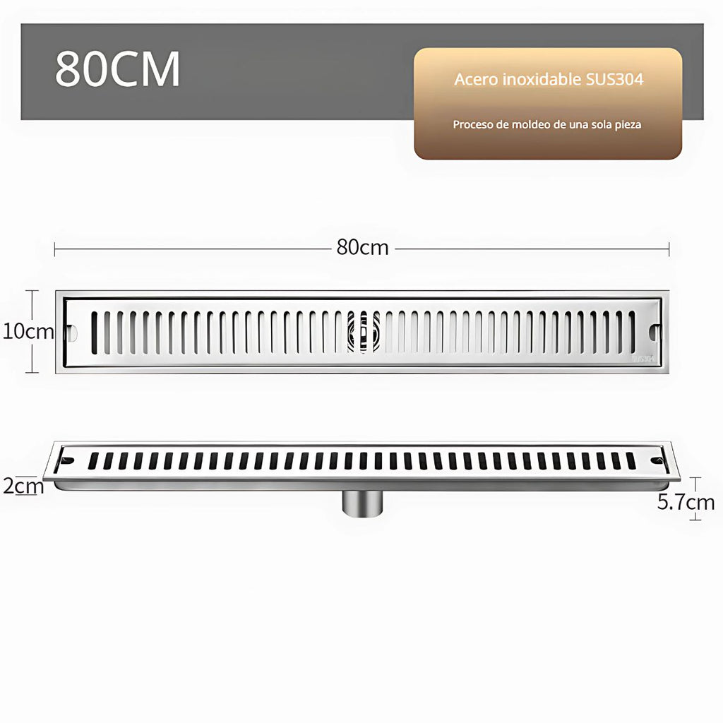 Drenaje Lineal De Piso 80Cm. Rejilla Rectangular. Desagüe Para Baño. Acero inoxidable.