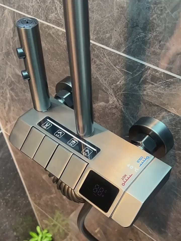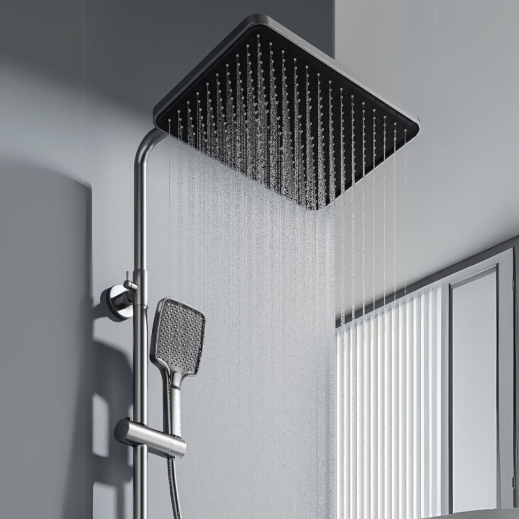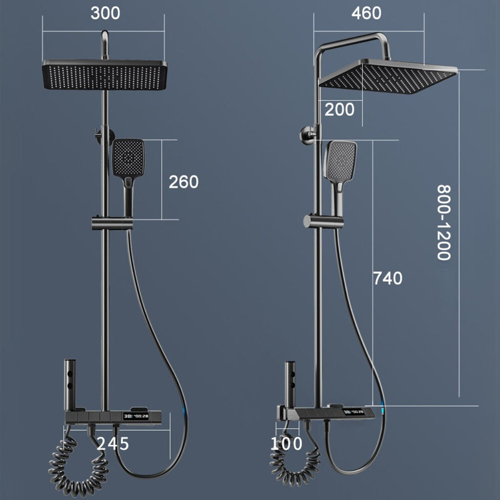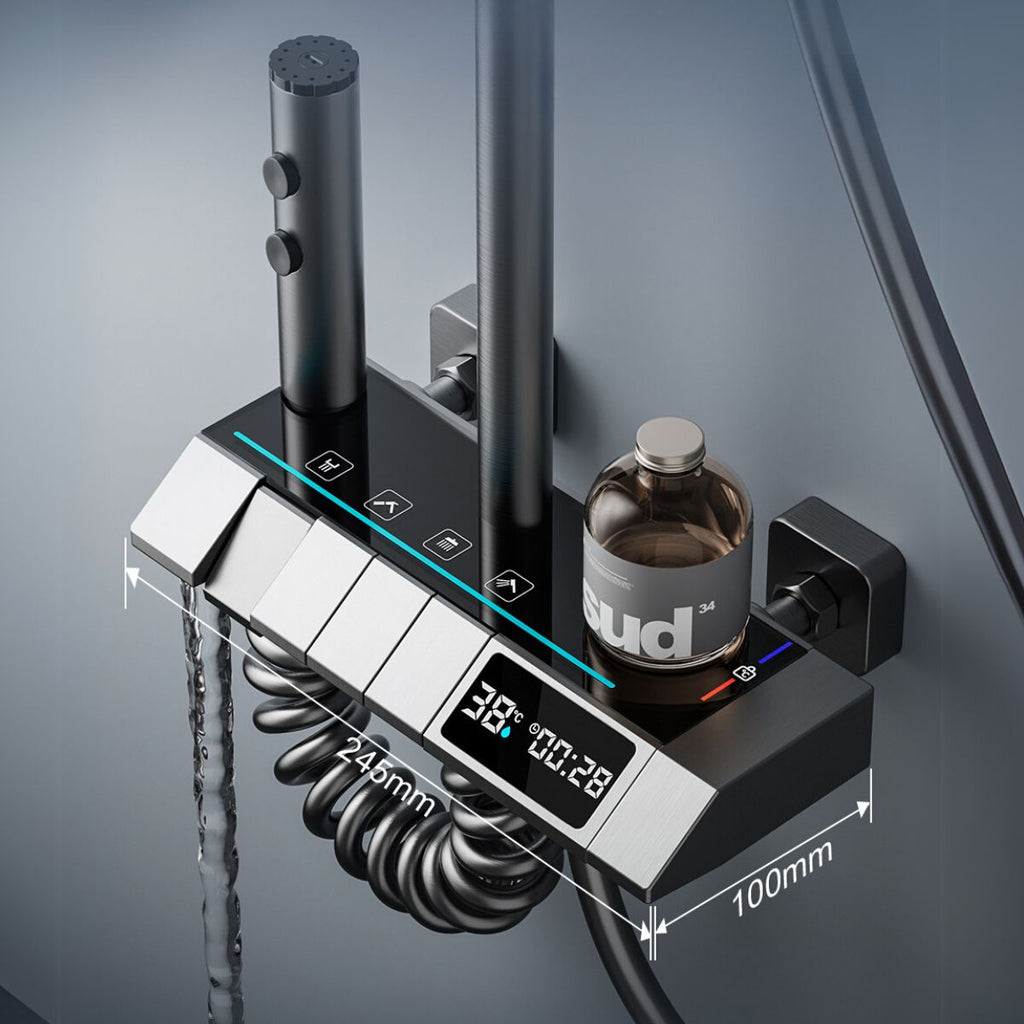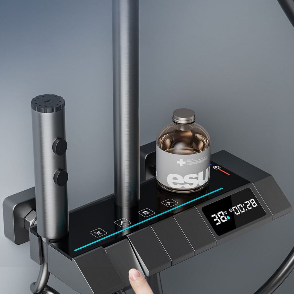 Ducha inteligente tipo lluvia. Set de regadera y ducha de mano con pantalla y termostato integrado. Color Gris metalizado.