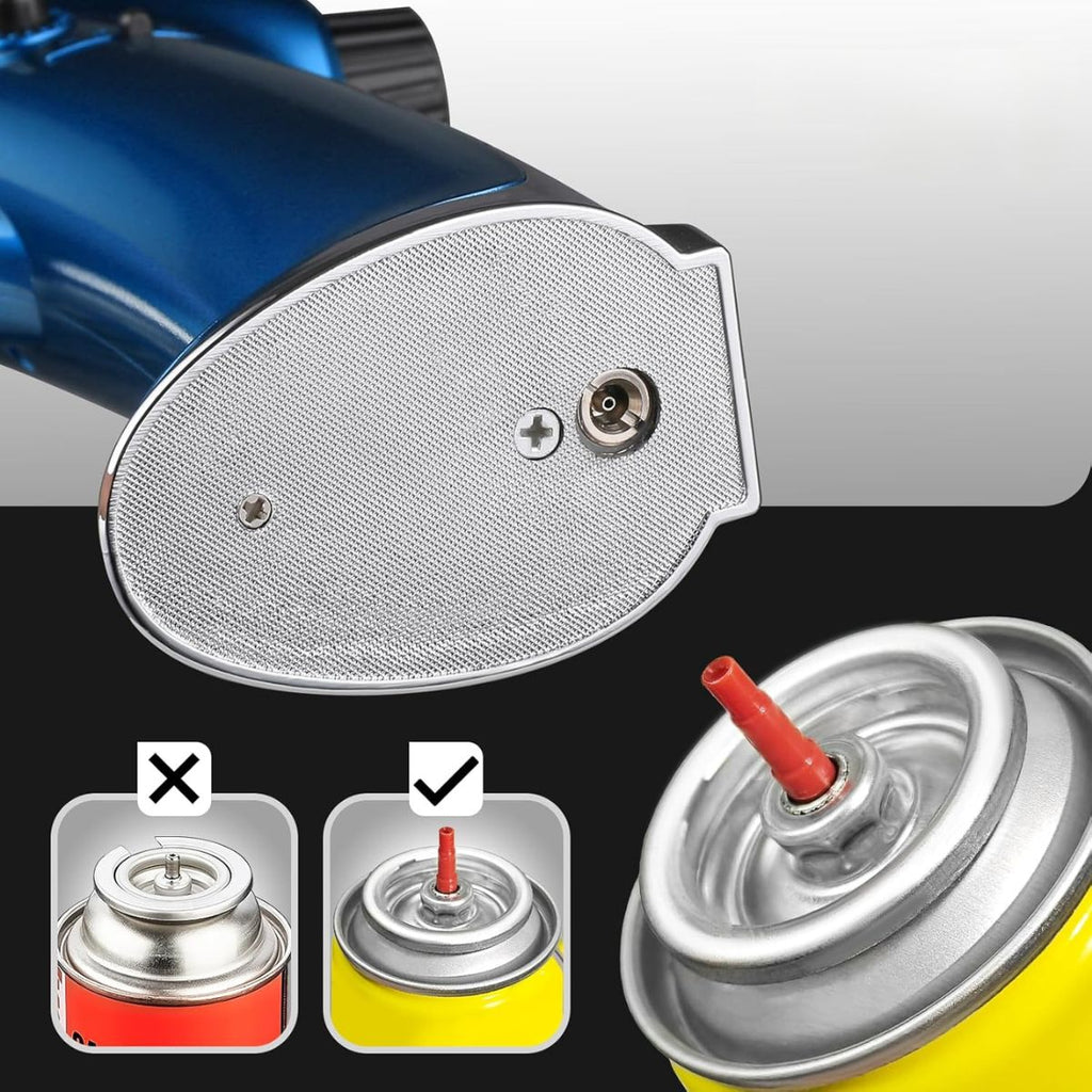 - Compatible con cartuchos de butano con válvula de boquilla larga (no incluidos).
