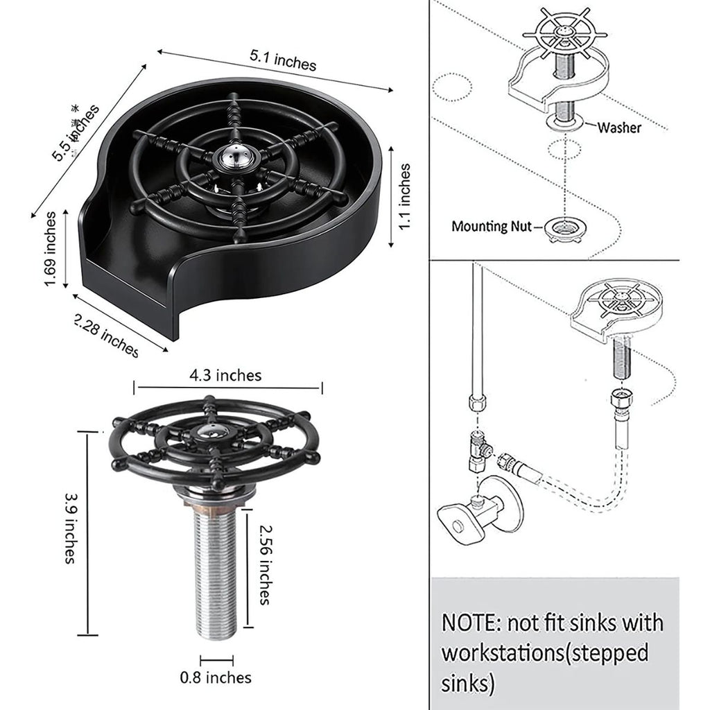 Enjuagador Automático para Vasos y Copas. Limpia Copas para Fregadero. Lavadora de vasos a presión con 5 boquillas.