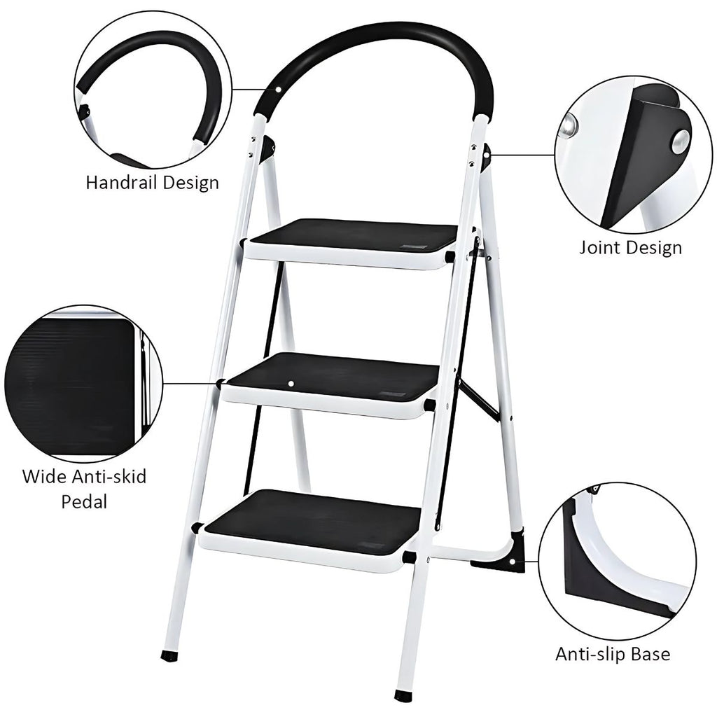 Escalera Plegable de 3 Peldaños con Pasamanos.