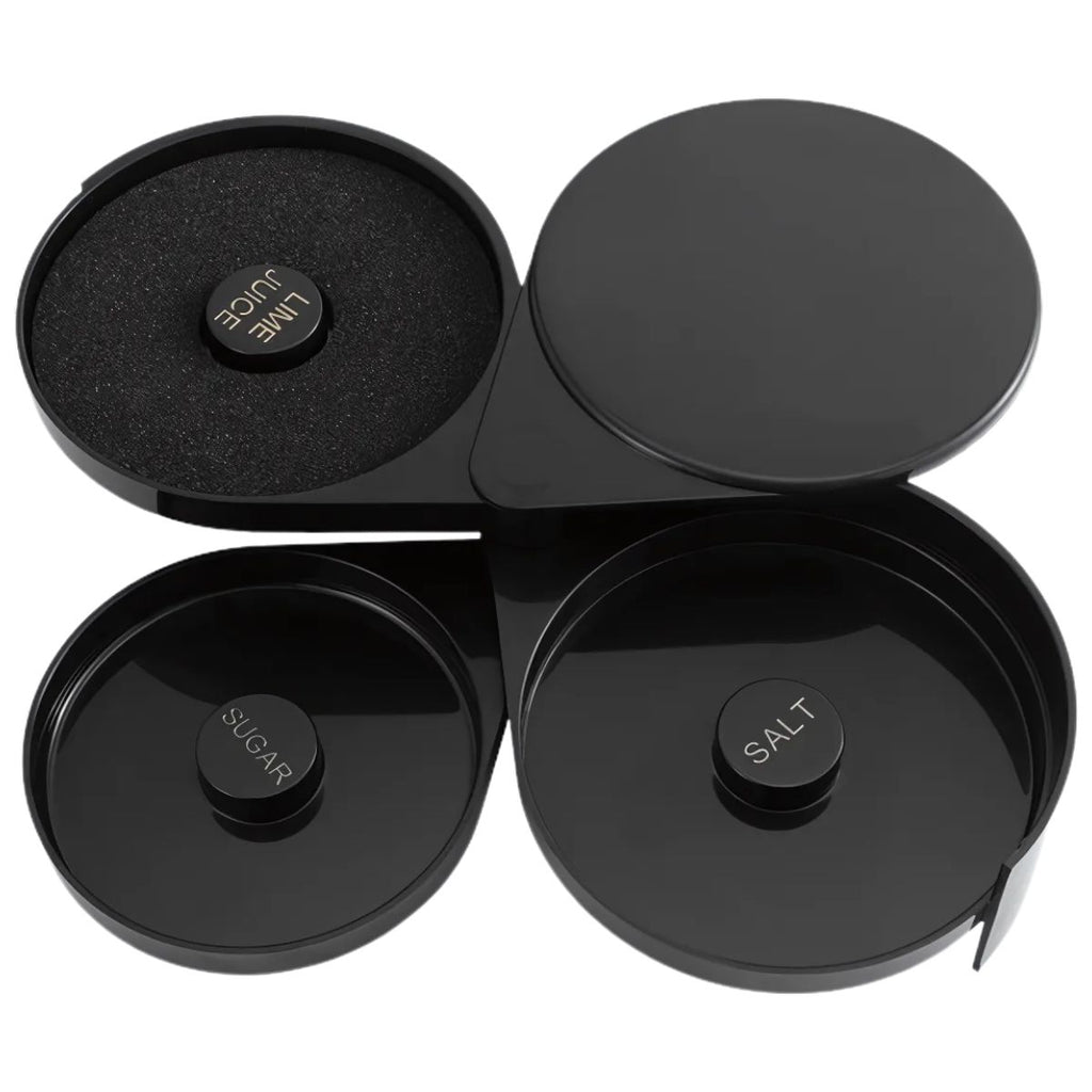 - Organizador de tres niveles ideal para escarchar copas con sal, azúcar y jugo de limón.