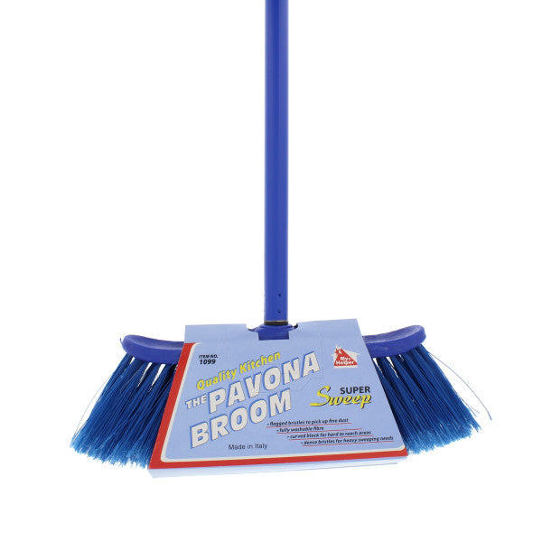 Escoba de 14'''' con mango de metal revestido de vinilo color azul