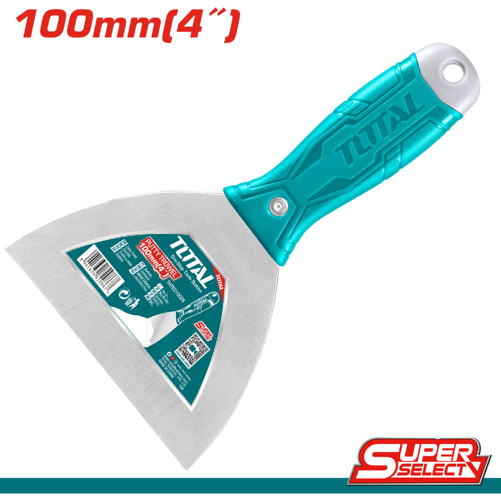 Espátula de 100mm (4”). Acero al Carbono con tratamiento térmico, pulido. Presentación con etiquete.