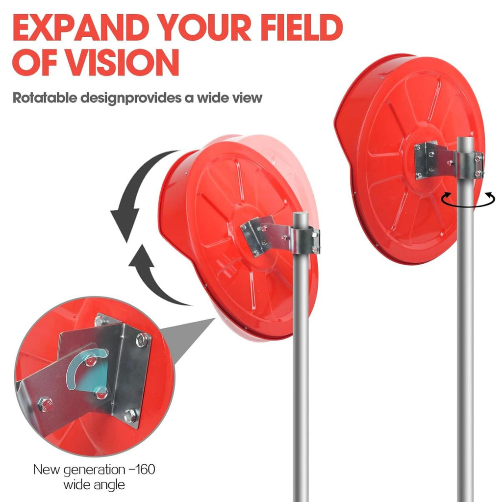- Ángulo ajustable: Permite orientar el espejo según la dirección del tránsito o el área a vigilar.