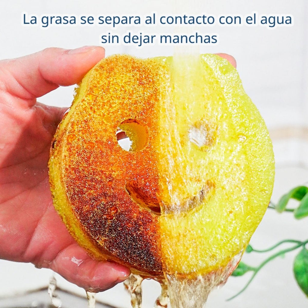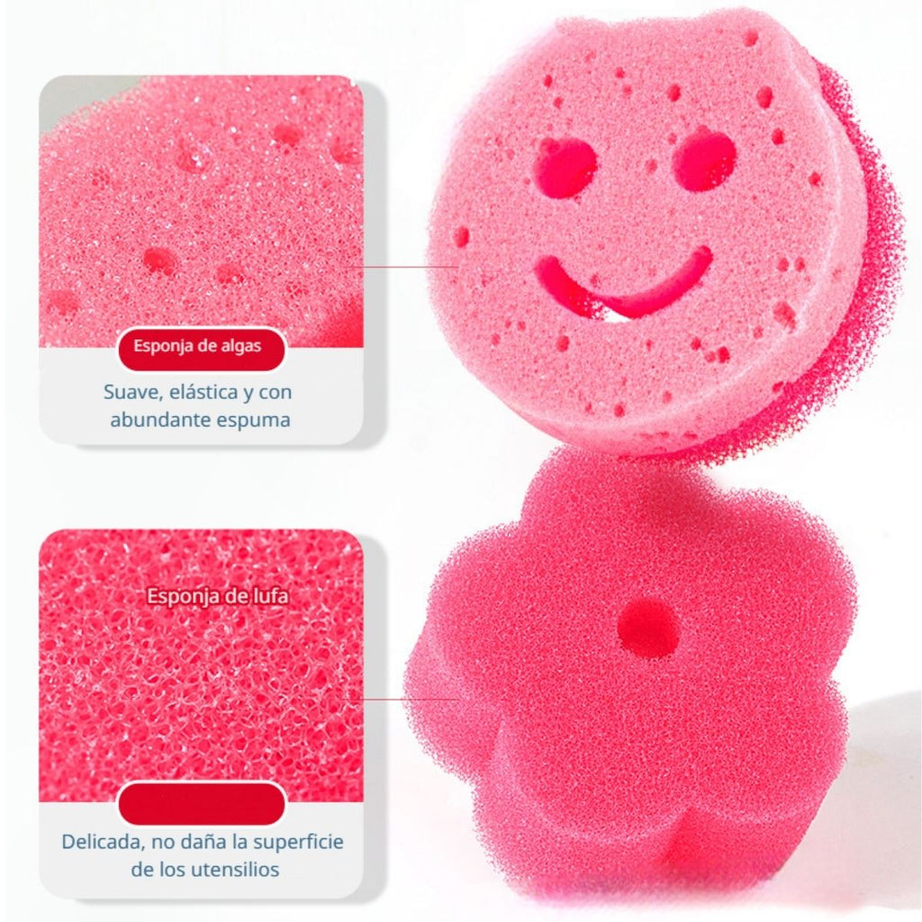 - Elaborada con material sintético de imitación lufa y esponja de algas, diseñada para una limpieza profunda sin rayar superficies.