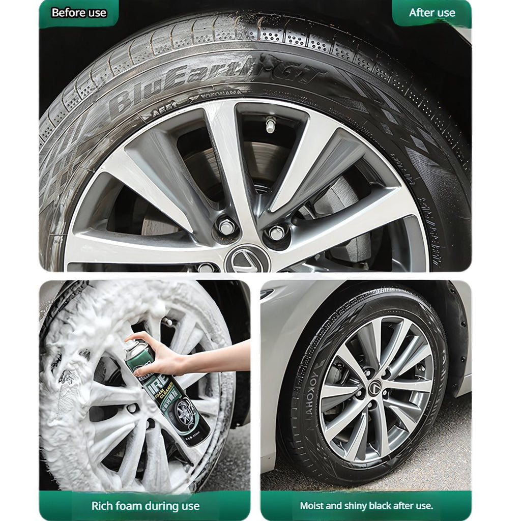 - Brillo Restaurador: Devuelve el color y el brillo original a las llantas, dejándolas como nuevas.