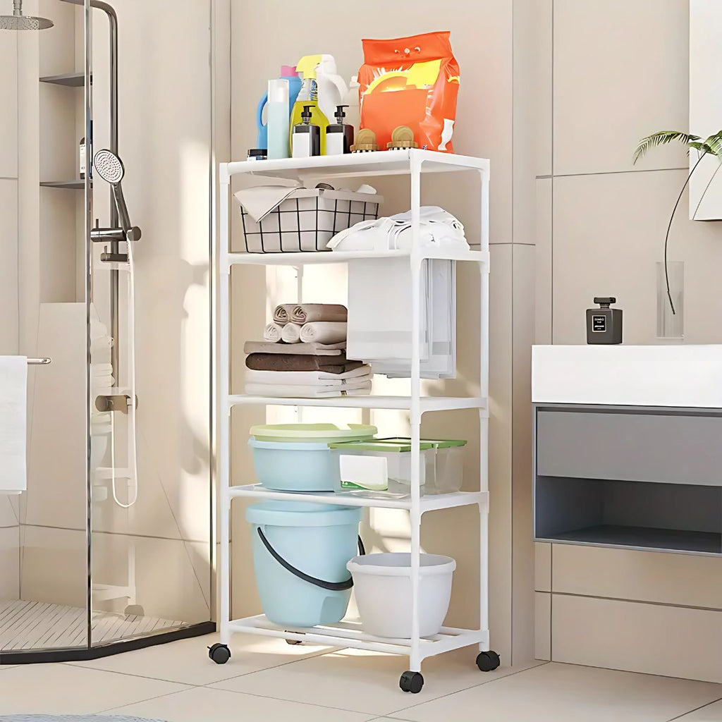 Estante Organizador de 5 Niveles con Ruedas para Baño, Cocina o Lavandería. Repisa para almacenamiento. 140x50.5x30cm Color blanco.