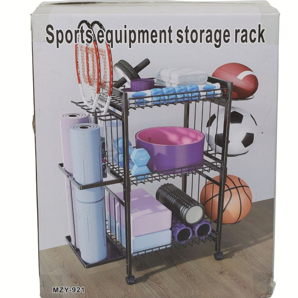 -Organizador multiuso 3 niveles de alta capacidad: Ideal para balones, colchonetas de yoga, pesas, rodillos de espuma y más.