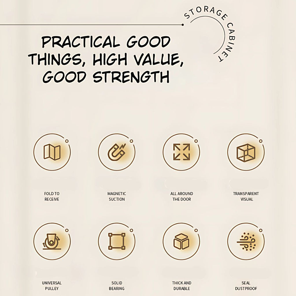 Estante Organizador Modular Plegable con Ruedas y Puertas Transparentes. Armario Desmontable Para Almacenamiento (70 cm de Ancho). Cajones Apilables.