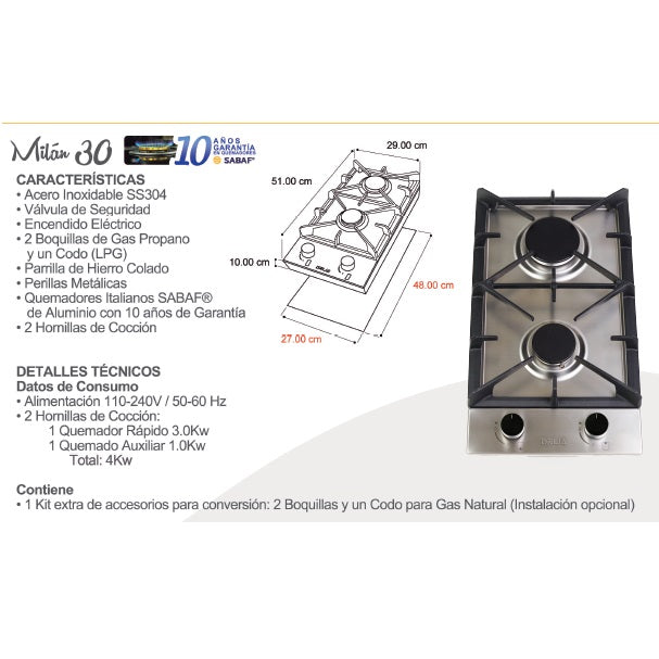 •Quemadores Italianos SABAF® de Aluminio con 10 años de Garantía