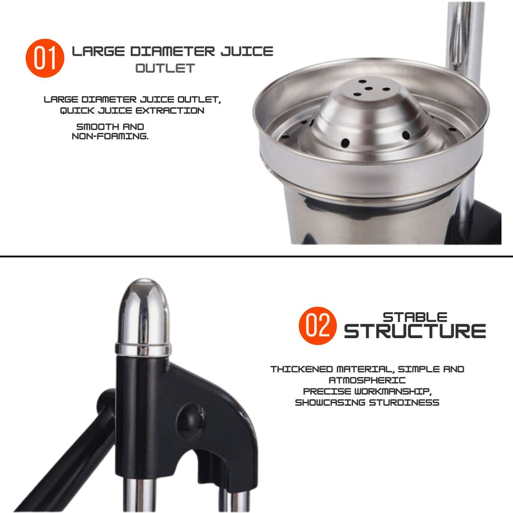 -Equipado con una taza de acero inoxidable para recoger el jugo recién exprimido, este exprimidor es ideal para obtener el máximo jugo con el mínimo esfuerzo.