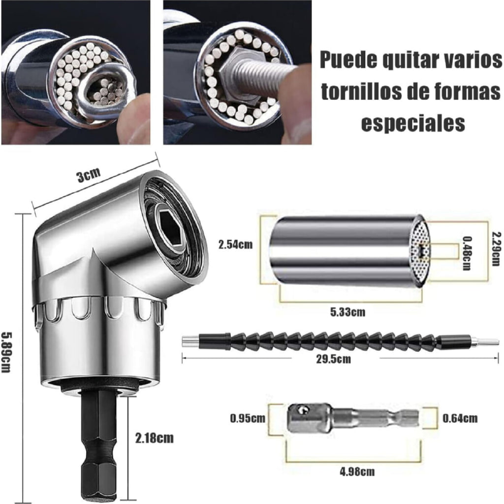 - Convierte las herramientas eléctricas, taladros o herramientas manuales en un práctico y versátil set de destornilladores para tuercas, con rodamientos de bolas de resorte en el conjunto de enchufes.