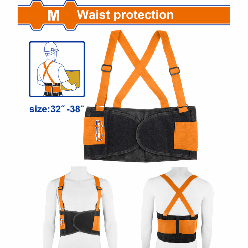 - El cinturón protege la zona lumbar mientras se trabaja y se levantan objetos para reducir la posibilidad de tensión o lesión.