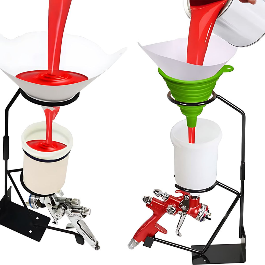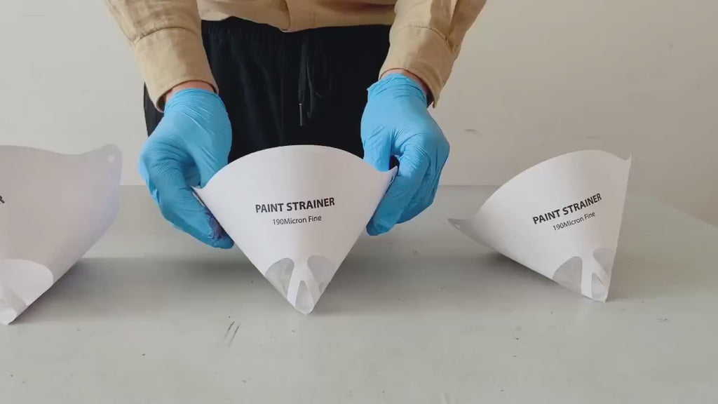 -Coladores de pintura en forma de cono que mantienen la pintura limpia y evitan obstrucciones.