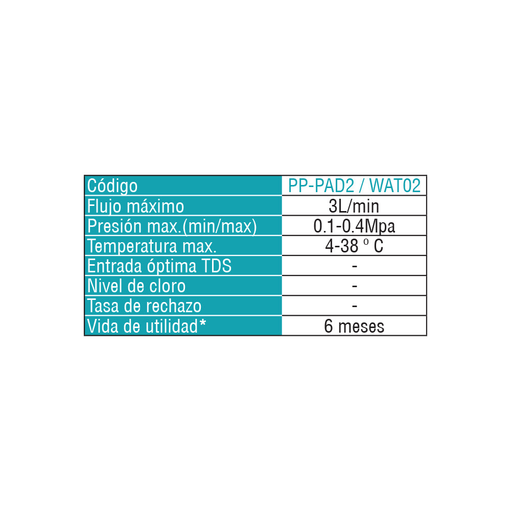 Filtro repuesto PP-PAD2 cambiar cada 6 meses aproximadamete. Funciona con WAT01 Snowpad Filtro de polipropileno para la eliminación de arena, óxido, lodo, sedimentos