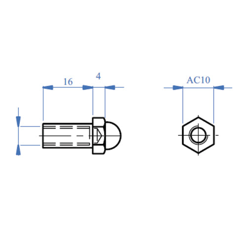 Final Hexagonal con rosca derecha.