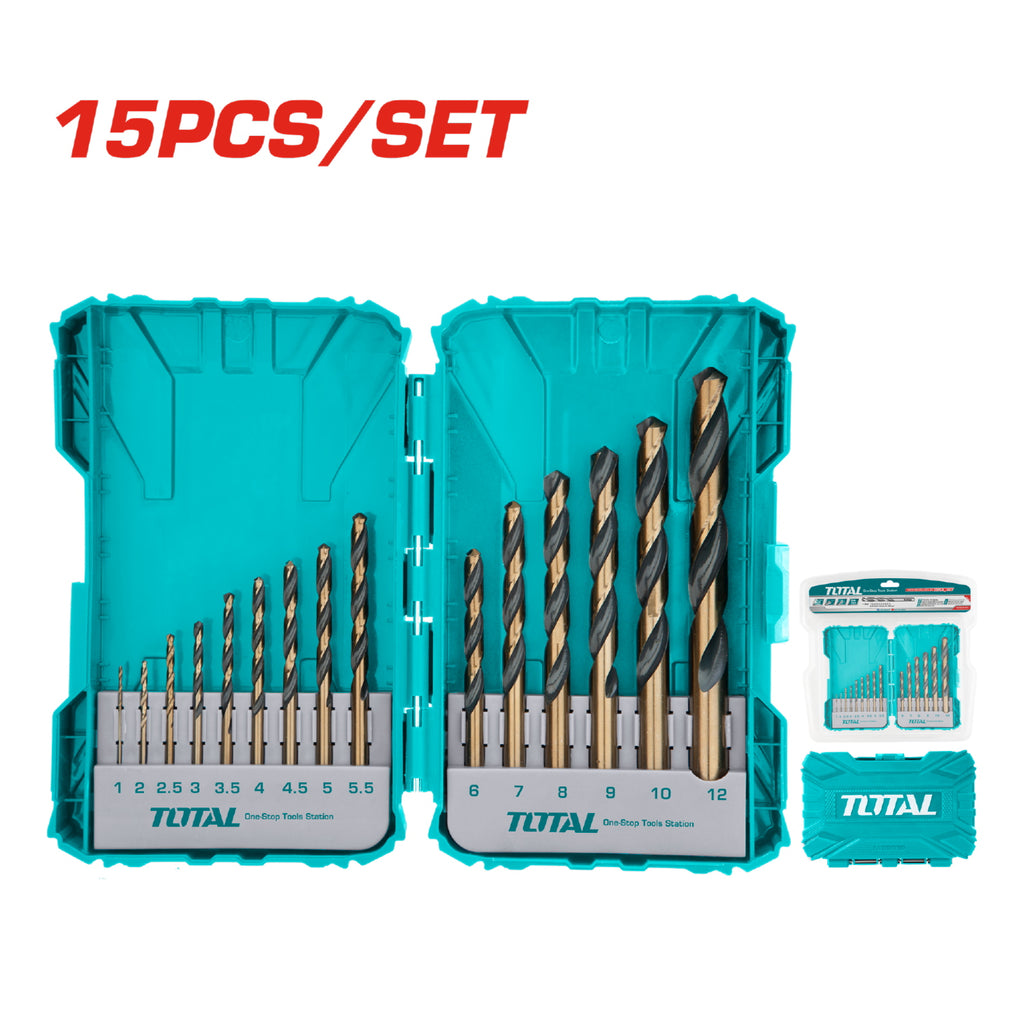 Juego de brocas HSS de 15 piezas para Taladro. Tamaños: 1,2,2.5,3,3.5,4,4.5,5,5.5,6,7,8,9,10,12 mm