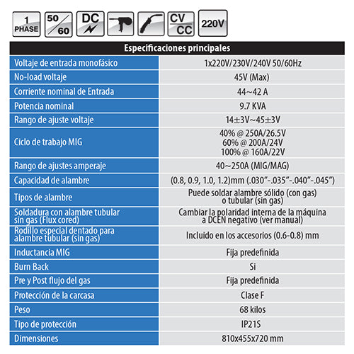 FNBC251 Maquina MIG especial para industria automotriz 220 Volts.Esp.maximo de alambre1.2mm.(1año)