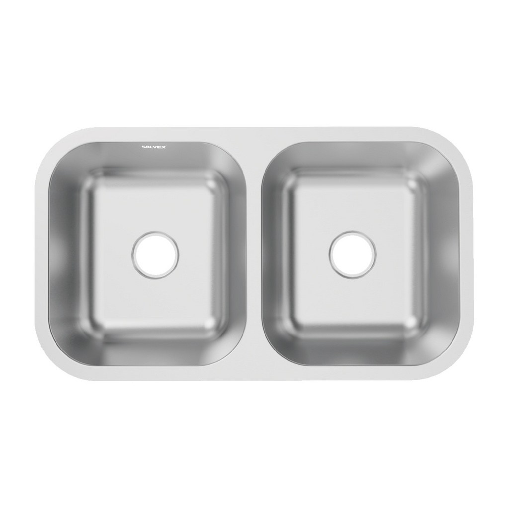 fregador de cocina doble fabricado en acero inoxidable de alta calidad.