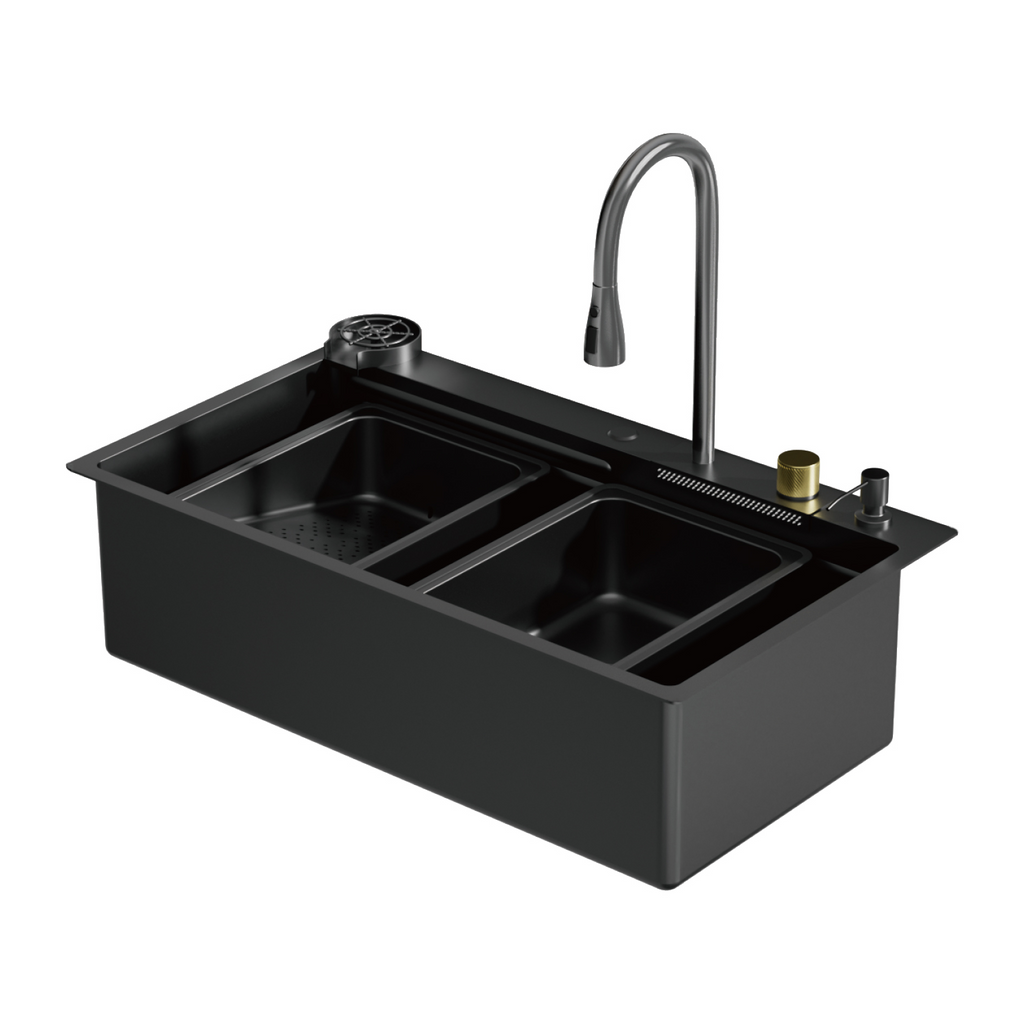 - Acabado negro nano, resistente a manchas y huellas, con aspecto sofisticado.