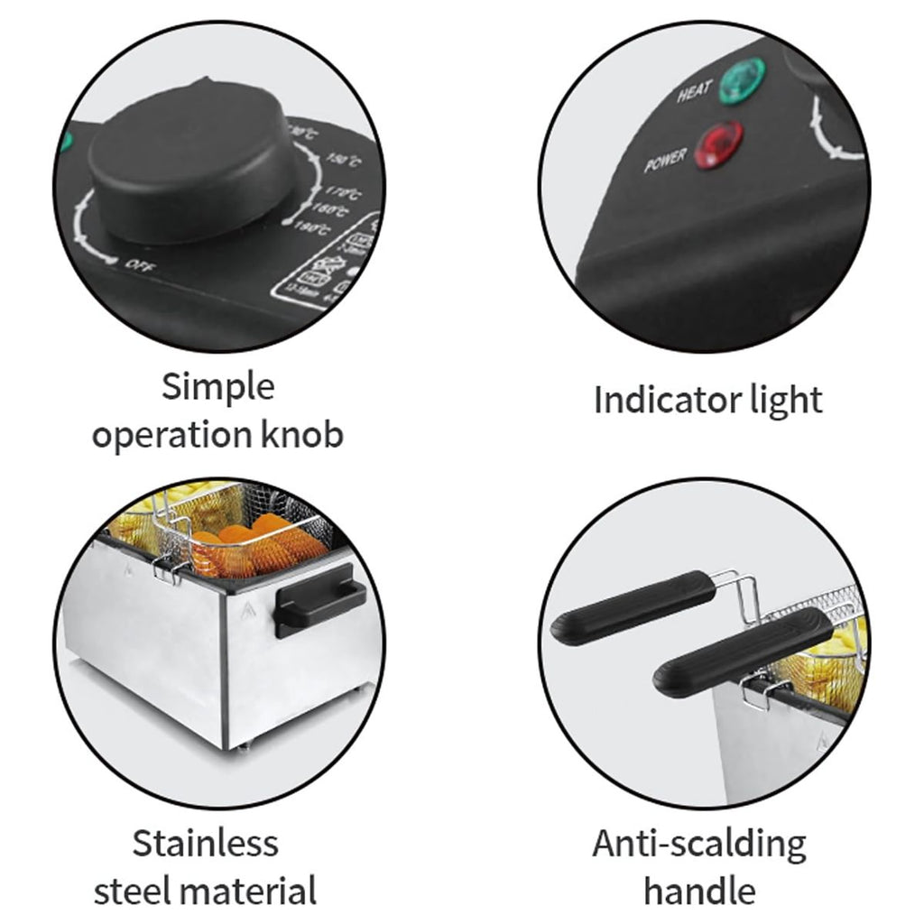 Freidora con aceite Deep Fryer 5L de acero inoxidable. 2100W Rango de 0 a 190°C. 110V