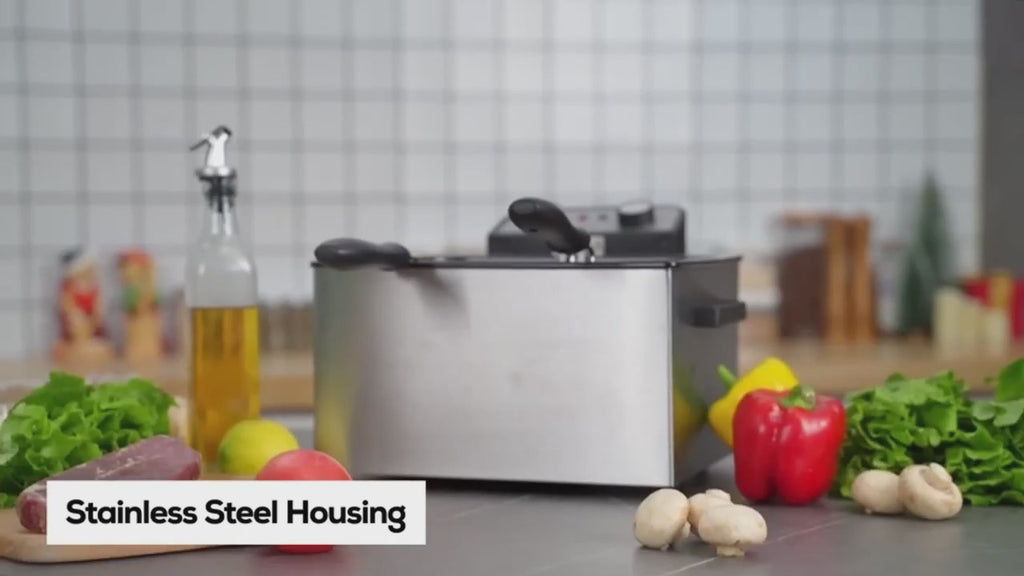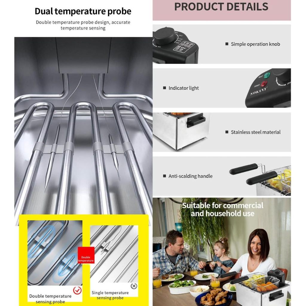 - Gran capacidad de 5 litros: Ideal para cocinar grandes porciones de alimentos fritos, con 3 cestas para mayor versatilidad. Perfecta para patatas fritas, croquetas, aros de cebolla, tempura, pollo frito, pescado, rollitos de primavera, rosquillas y más.