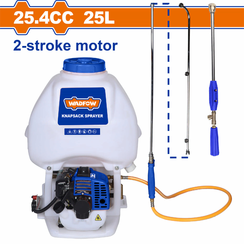 | Características | Fumigadora de espalda motorizada. 2 Tiempos de 25.4cc (0.75KW). Capacidad de 25L Rociador Portátil. Presión de trabajo 10-25bar Tanque de combustible 0.7L. |