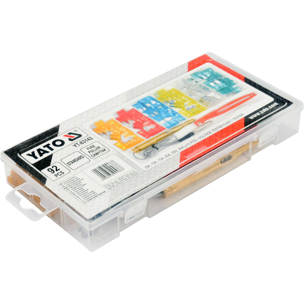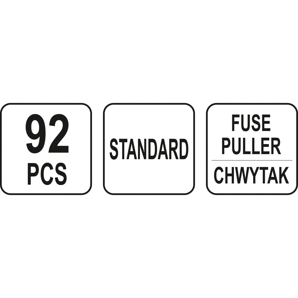 CODIFICADO POR COLORES SEGÚN EL TAMAÑO, EL TIPO ESTÁNDAR, EL TAMAÑO: 5A-10A-15A-20A-25A-30A * 15PCS; 1PC PROBADOR DE VOLTAJE 6- 24V, 1PC EXTRACTOR DE FUSIBLES