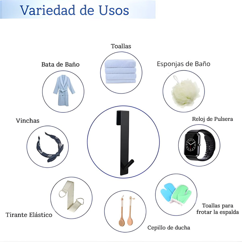 - Ideal para colgar toallas, batas, esponjas y accesorios de baño