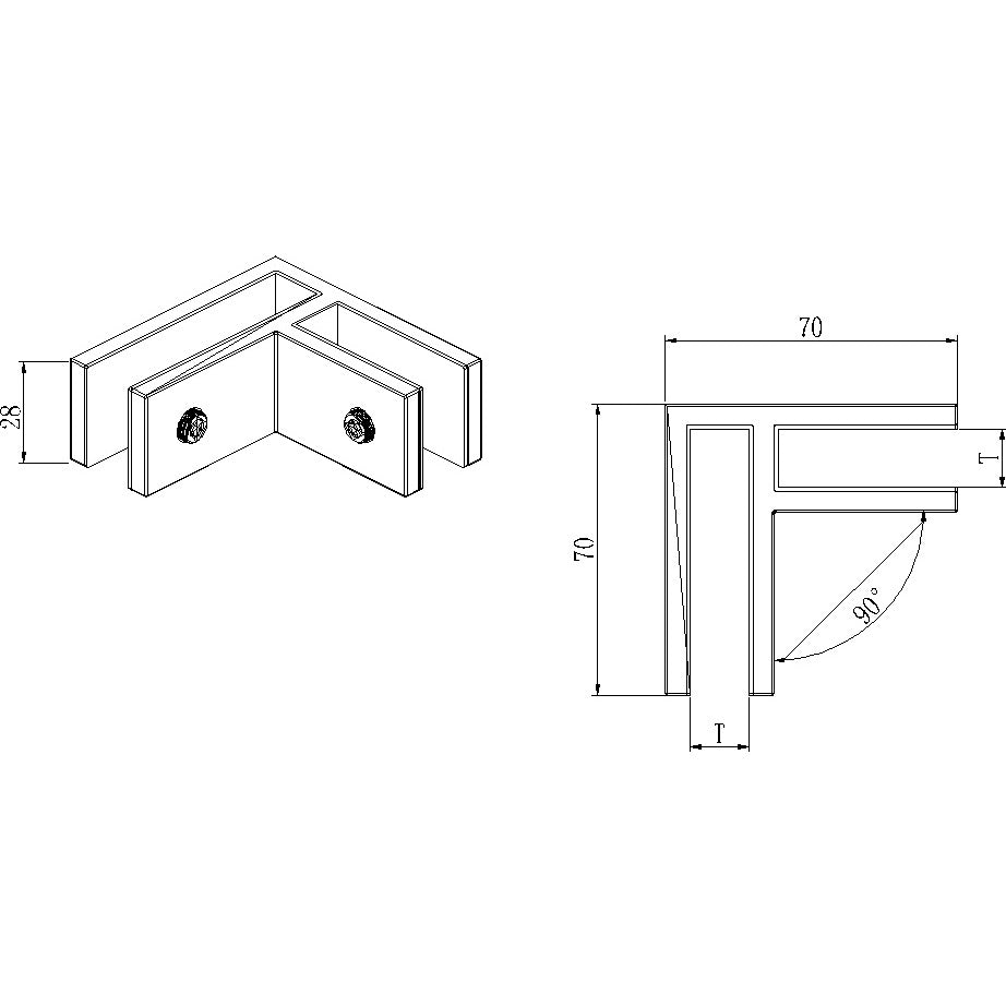 Clip para Vidrio, 90 grados, Vidrio - Vidrio, AISI304, SATIN