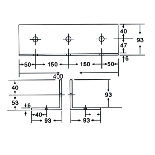 Grapa de soporte para contrafuertes de vidrio de 400 mm. satinada.