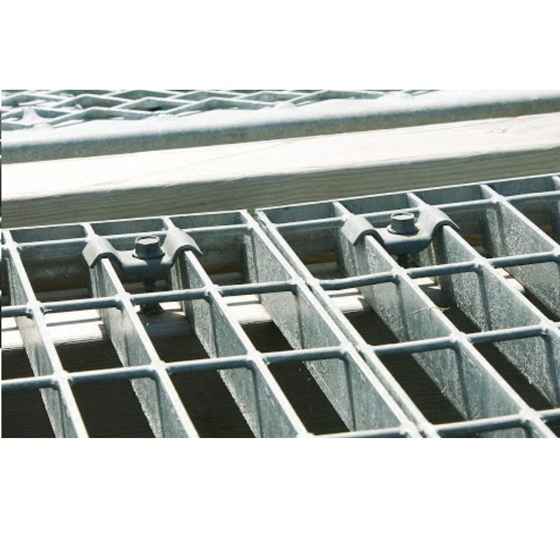 Grapa o fijador tipo A para Rejilla electrosoldada gratin galvanizado. Se usa para fijar el piso de grating a la estructura.