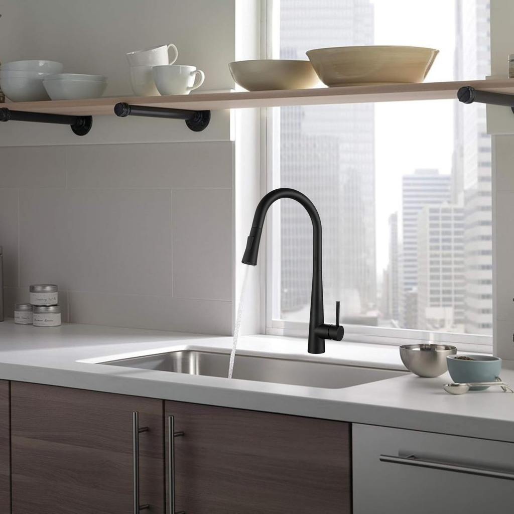 Grifo de fregadero. Color negro. Acero inoxidable. Pluma llave para fregador de cocina. Cuello cisne.