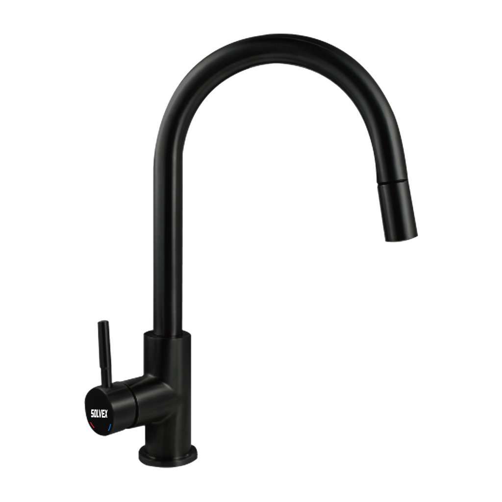 - Acabado negro con superficie mate para un estilo moderno y elegante